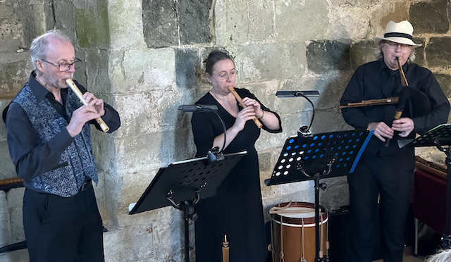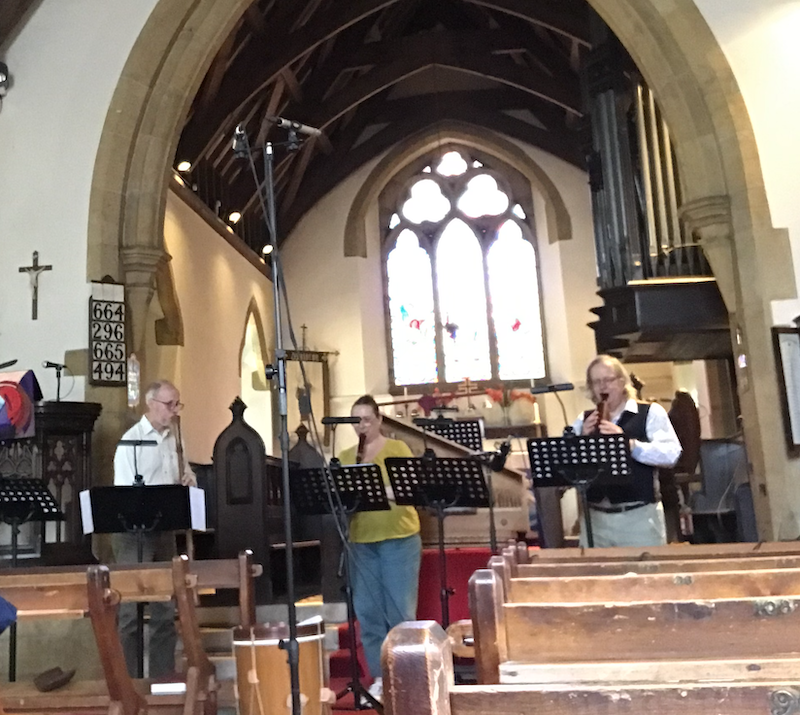 We are currently halfway through a two-day recording session preparing our next CD, entitled Be Merry All! With the car packed with instruments (including portative organ, recorders, buzzing winds, strings, percussion, bells and much else), not to mention recording equipment, stands and all the other paraphernalia, we set off for St Bartholomew’s Church near Heathfield to start work. Despite the best efforts of aircraft approaching Gatwick, dogs, birds, children, motorbikes and even a traction engine trying to get in on the act, we have about half of it in the bag. More details coming soon!